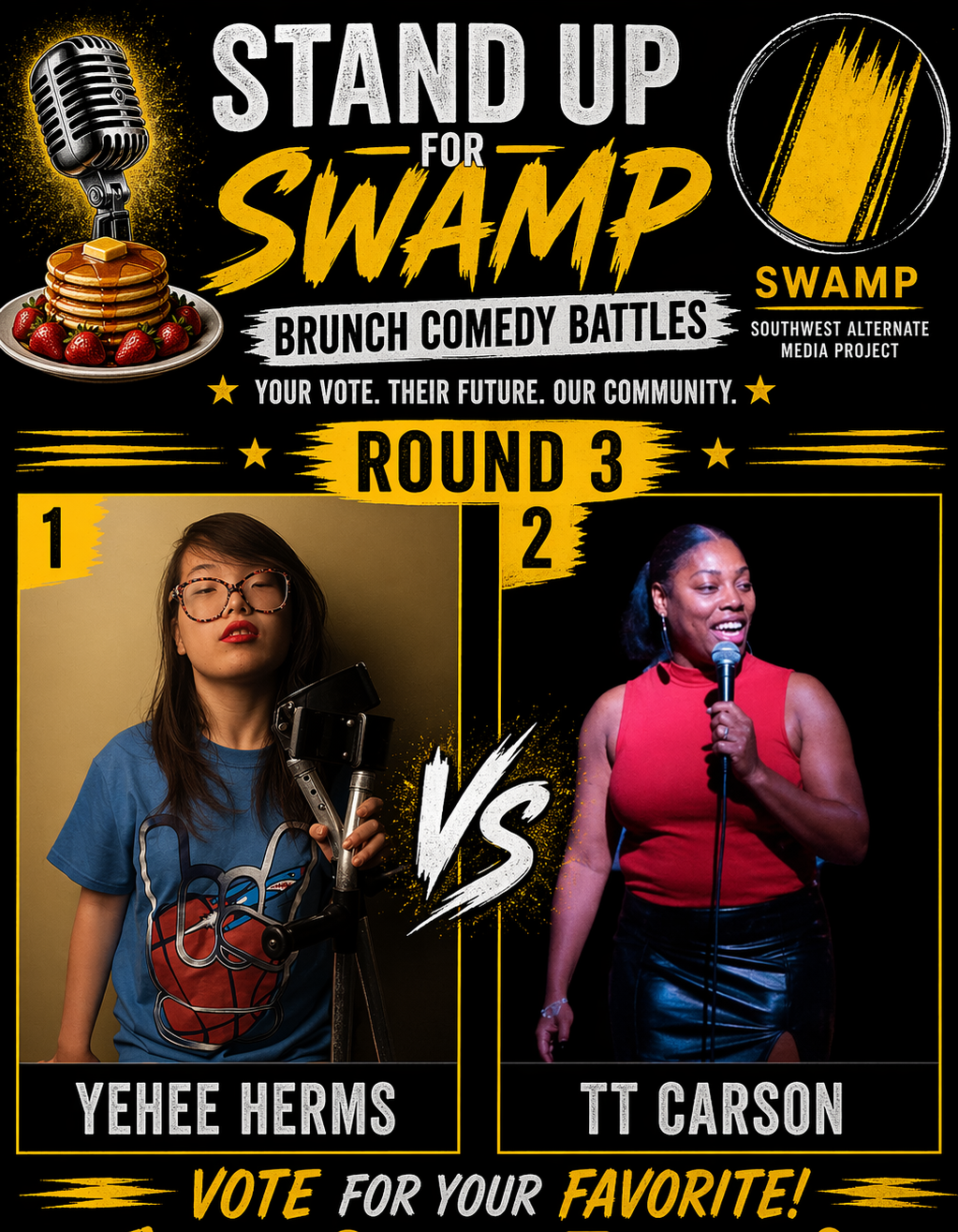 This month, SWAMP is honored to participate in the BRUNCH COMEDY BATTLE — an amazing charity fundraiser taking place on April 17th 2026.